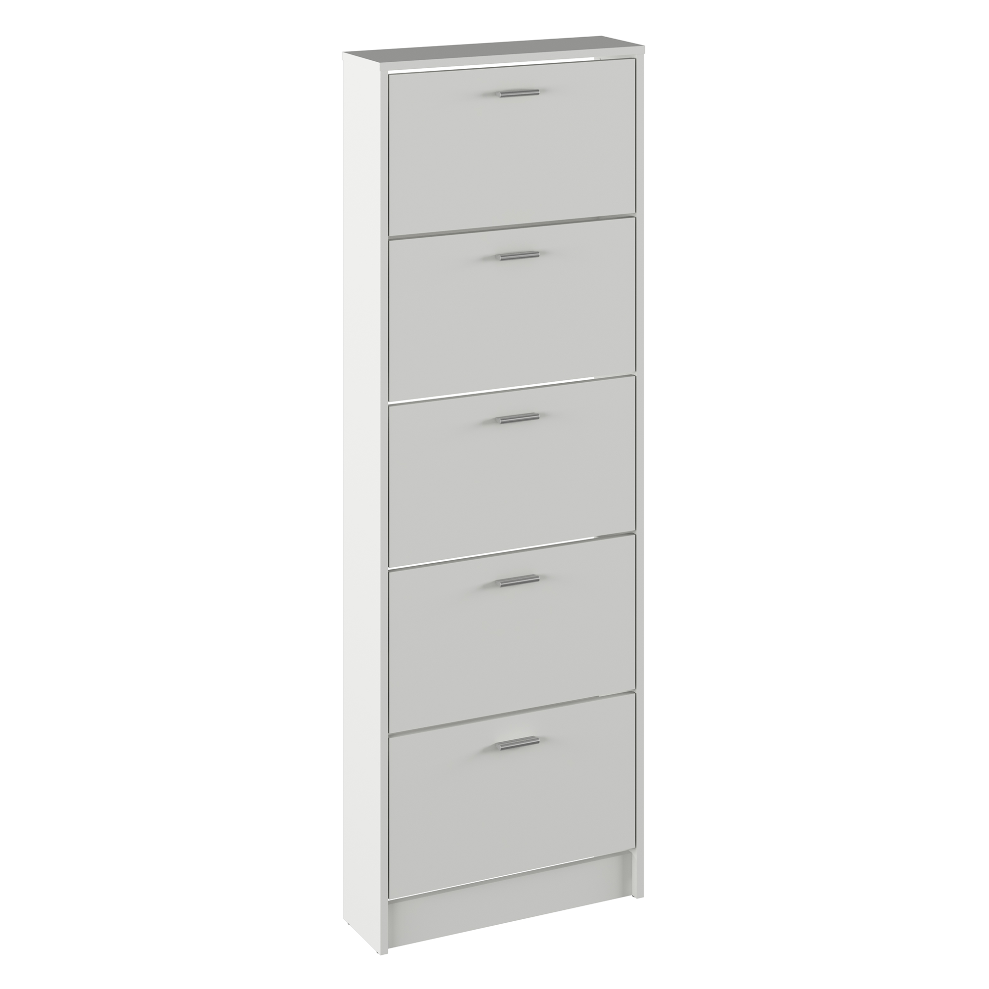 Ustavičný problém s uskladnením topánok? Päťradový botník MOBI 15 je ideálnym riešením, ktoré udrží poriadok vo vašej predsieni. Botník je vyrobený z laminovanej drevotriesky (DTD) v elegantnom bielom farebnom prevedení, ktoré vnesie do priestoru svieži a čistý vzhľad. S piatimi výklopnými šuplíkmi poskytuje dostatok úložného priestoru pre obuv celej rodiny. Praktický dizajn botníka zároveň dodá predsieni nový, organizovaný vzhľad a zabezpečí, že všetko bude mať svoje miesto.