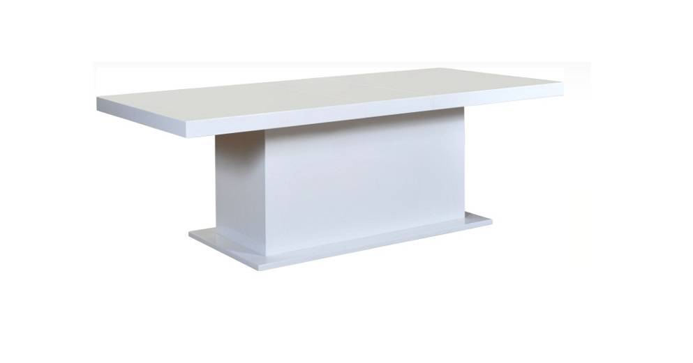 Moderný rozkladací stôl Kacper s jednou hrubou stolovou nohou. Stôl pôsobí masívne a kvôli pevnej nohe sa nemusíte báť že bude nestabilný. Biely lesk je stále vyhľadávanou farebnou variáciou, pretože sa hodí do všetkých jedálni alebo kuchýň. Rozkaldanie na stole Vám zaistí, množsto stolovacieho miesta pre veľkú rodinu.