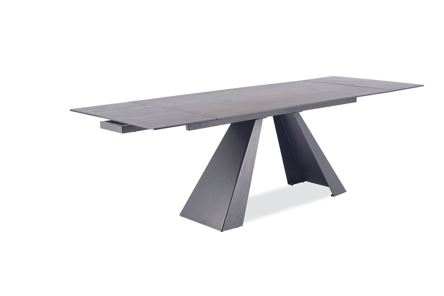 Stôl Salvadore Ceramic II predstavuje ideálne riešenie pre jedálne alebo obývacie izby, ktoré vyžadujú štýl, funkčnosť a flexibilitu. Vďaka rozkladacej funkcii možno dĺžku stola predĺžiť z 120 na 180 cm, čo zabezpečí dostatok miesta pre pohodlné stolovanie až 8 osôb. Jeho čistý, minimalistický dizajn pôsobí nadčasovo a ľahko zapadne do moderných aj klasických interiérov. Výnimočná je aj použitá kombinácia materiálov – tvrdené sklo a talianska keramika so štýlovým mramorovým efektom, ktorá spája estetiku s vysokou odolnosťou voči poškodeniu a teplu. Stabilnú oporu zabezpečuje pevná kovová konštrukcia v čiernom matnom prevedení, ktorá zaisťuje dlhú životnosť nábytku.