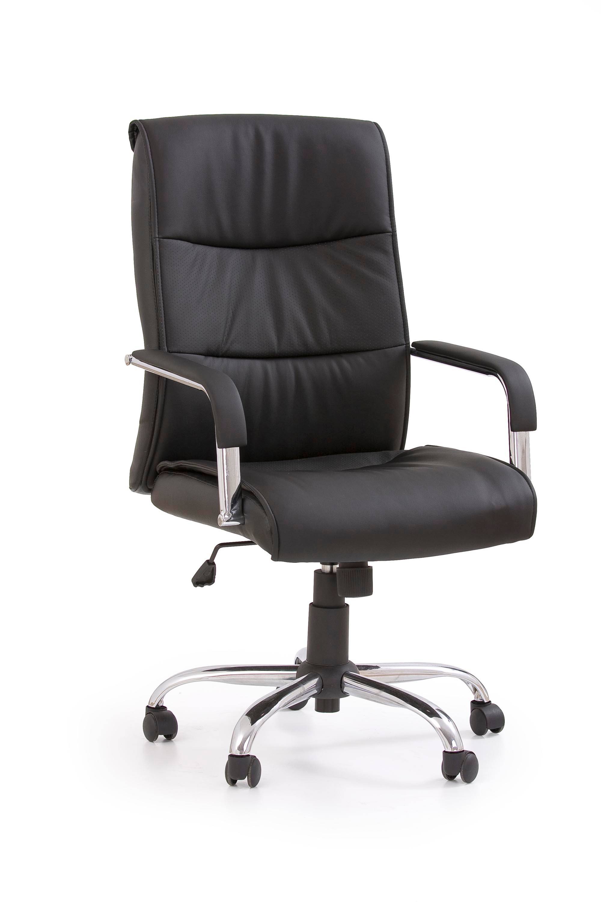 - Moderný, reprezentatívny vzhľad – čierne čalúnenie z ekokože v kombinácii s lesklou chrómovanou základňou dodáva kreslu profesionálny a elegantný charakter, ktorý vynikne v každom interiéri.