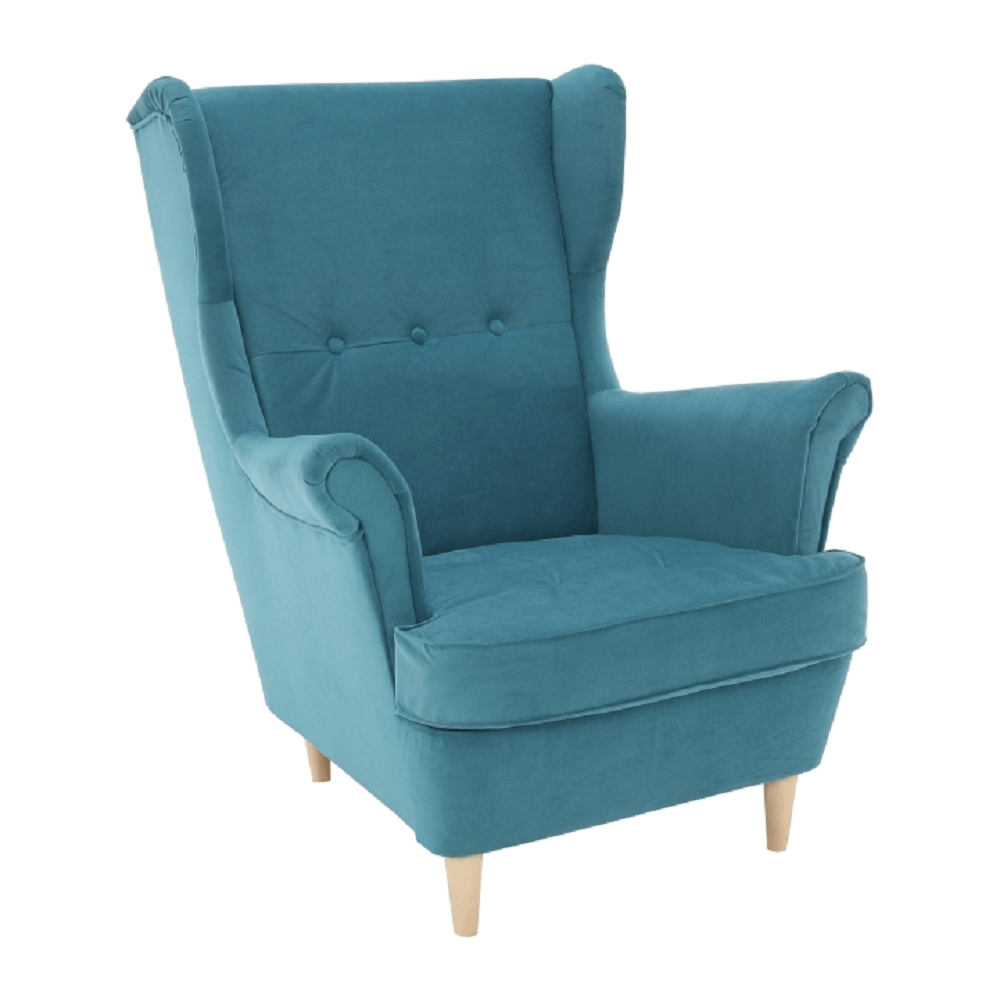 Kreslo RUFINO 3 NEW je moderné ušiakové kreslo, ktoré skvele kombinuje štýl a pohodlie. Poskytuje ideálne miesto na relax pri sledovaní televízie, čítaní alebo oddychu po náročnom dni. Opierka chrbta má optimálnu tvrdosť a pomáha predchádzať bolestiam chrbta. Mohutné bočné opierky rúk dodávajú komfort a uvoľnenie, zatiaľ čo elegantné ozdobné gombíky a drevené nožičky vo farebnom prevedení buk dotvárajú štýlový vzhľad kresla.