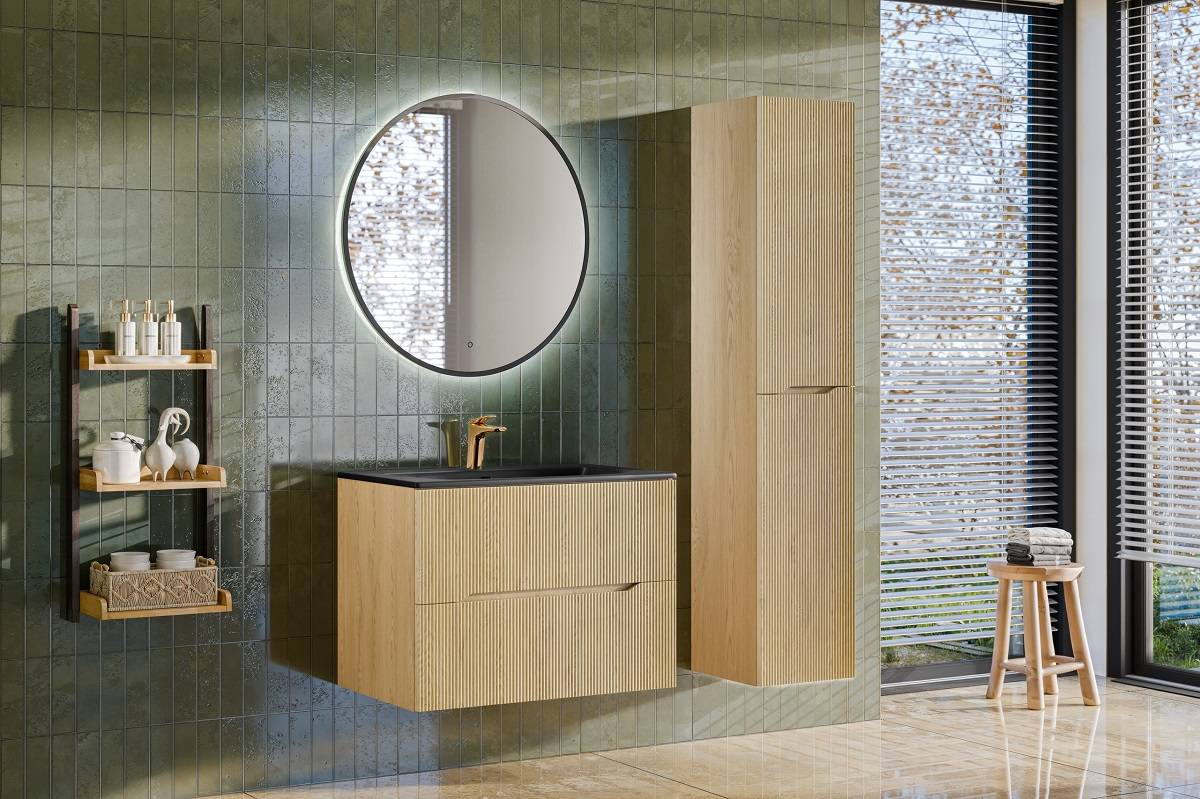 Kolekcia Nordic Cremona predstavuje harmonické spojenie moderného dizajnu a jemnej elegancie. Predné panely zdobia jemné vertikálne ryhy, ktoré nábytku dodávajú ľahkosť a štýlový vzhľad, zatiaľ čo dekor Dub Cremona prináša do priestoru teplý a prirodzený dojem dreva. Asymetricky tvarovaný úchyt, integrovaný priamo do nábytku, podčiarkuje jeho moderný a jednotný vzhľad. Mechanizmus tichého dovierania umožňuje hladkú a pohodlnú prevádzku, a skrinky pod umývadlo s hĺbkou 46 cm poskytujú dostatok úložného priestoru a zároveň sú praktické pre každú kúpeľňu. Kolekcia je zhotovená z kvalitných materiálov, ako sú MDF a laminát, čo zaručuje dlhodobú estetiku a odolnosť.