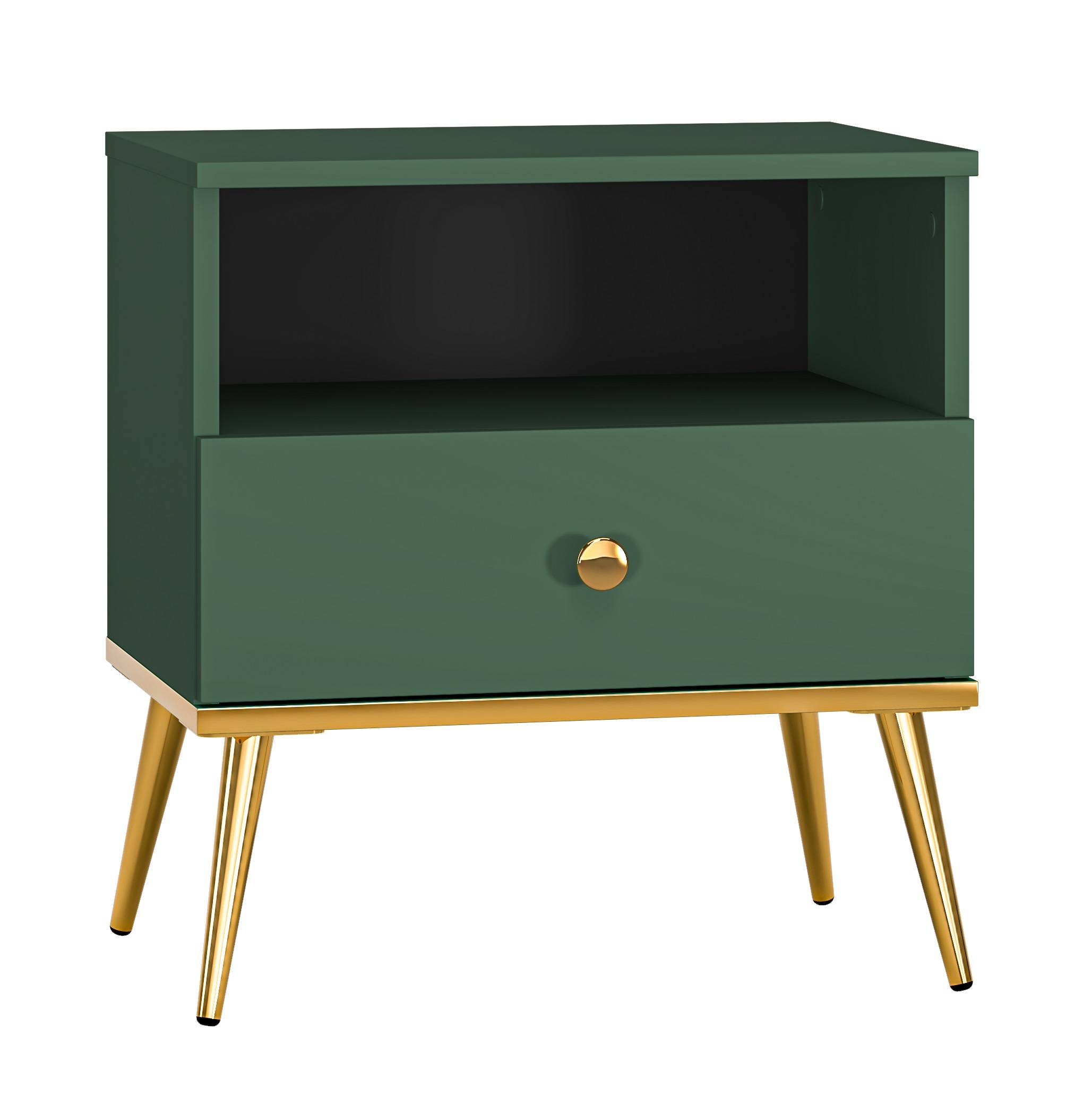 Nočný stolík FOREST 06 v odtieni labrador je neoddeliteľnou súčasťou modernej spálne. Tento hlboký odtieň krásne ladí so zlatými detailmi, vytvárajúc efektný a luxusný vzhľad, ktorý zaujme aj náročných zákazníkov. Stolík je prakticky navrhnutý – obsahuje zásuvku a otvorenú poličku, ktoré poskytujú dostatok miesta na uloženie drobných predmetov, ako sú lieky či knihy. Všetko, čo potrebujete mať poruke, je hneď po ruke, čo z nej robí funkčný a pohodlný doplnok spálne. Doska stolíka je ideálne miesto na dekorácie – lampičku, hodiny alebo rámik s fotkou, ktoré dodajú miestnosti štýlový a príjemný charakter. Vyrobený z kvalitných materiálov s ABS hranami, stolík FOREST 06 zaručuje pevnosť a dlhú životnosť.