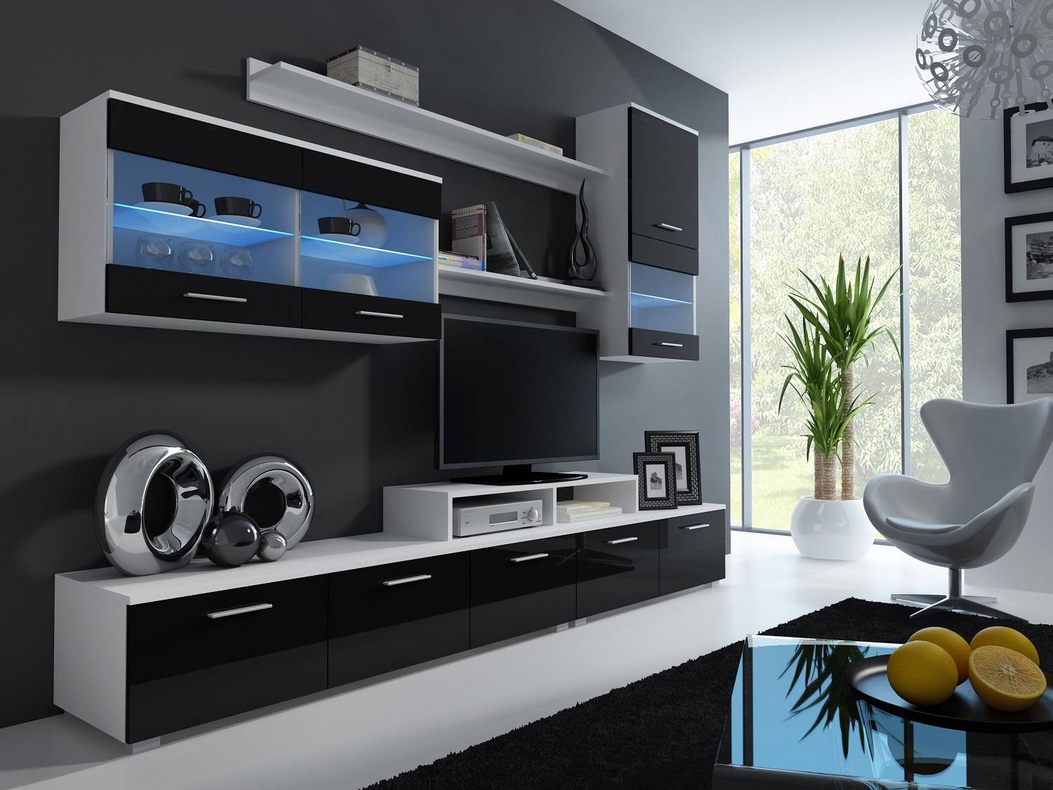Moderná obývacia stena je vyrobená podľa špecifických požiadaviek na dodržanie nenásilnej jemnej línie. Korpus obývacej steny je matný - dvierka sú vyrobené v lesku. Dokúpením led osvetlenia poličiek zvýrazníte obývačkovú zostavu a presvetlíte tak nočný priestor napríklad pri sledovaní televízie, relaxácie alebo pri návšteve.