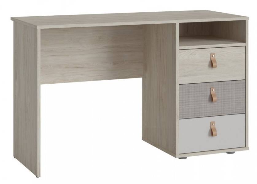Písací stôl Denim DEIB01 spája moderný dizajn s praktickým využitím. Ponúka tri priestranné zásuvky s kvalitnými guľôčkovými pojazdmi, elegantné kožené úchytky a odolnú laminovanú dosku v príjemných, teplých odtieňoch. Ideálny doplnok do moderného interiéru.