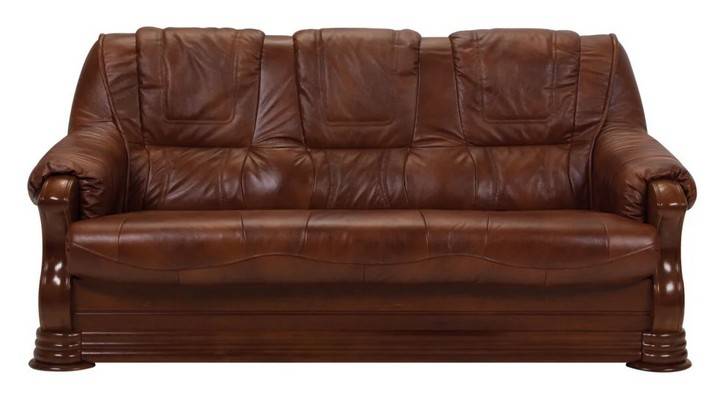 Klasické prevedenie pohovky v koženom prevedení v kombinácii s drevom. Masívna drevená konštrukcia robí z pohovky perfektný kúsok, ktorý sa hodí do každej klasicky orientovanej izby. Prešívanie ktorým je sedačka vybavená sa perfektne hodí k ostatným častiam. Zadná strana sedačky je vybavená dreveným chrbtom v rovnakom dekore ako sú ostatné drevené časti, preto je pohovka vhodná aj na jej umiestnenie do priestoru.