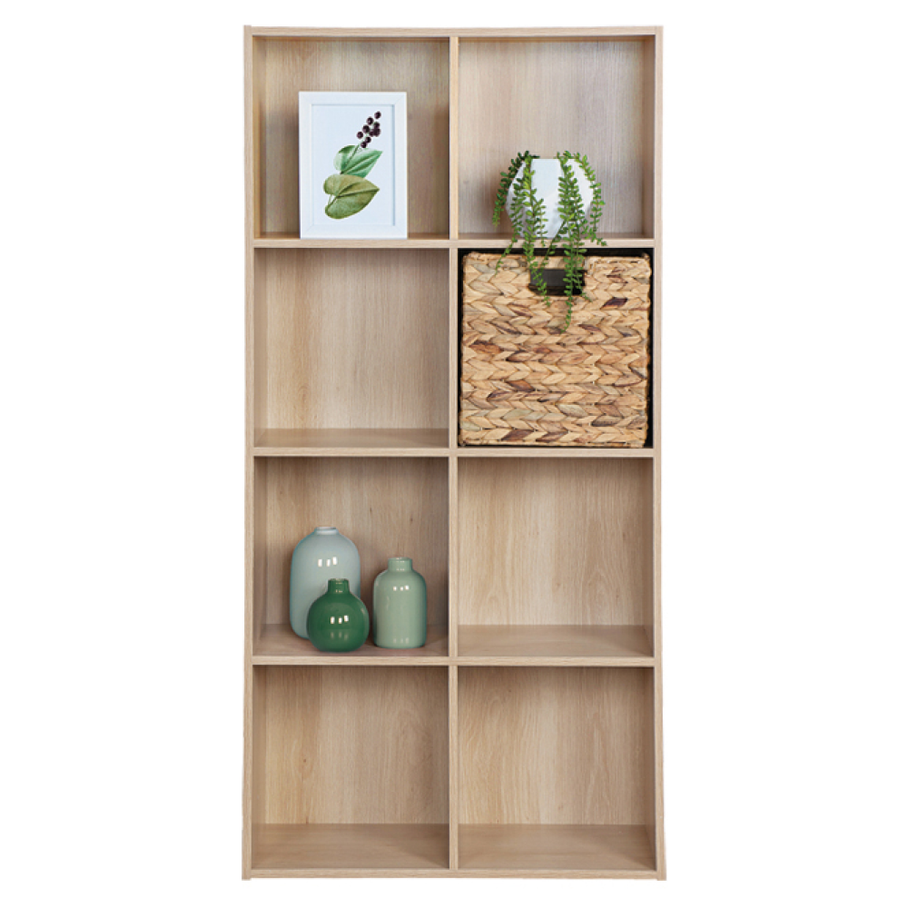 Regál SANDE kombinuje funkčnosť a estetiku, pričom dodá vášmu domovu nový šmrnc. Vyrobený je z kvalitnej fóliovanej DTD vo farbe dub prírodný a poskytuje úložný priestor v podobe ôsmich odkladacích plôch. Police môžete využiť na vystavenie suvenírov, rodinných fotografií, kníh či iných dekorácií. Regál je dodávaný bez úložného boxu a doplnkov, ktoré si môžete prispôsobiť podľa vlastného štýlu. Jednoduchý dizajn robí z regálu SANDE ideálny prvok do obývačky, pracovne, spálne či detskej izby.