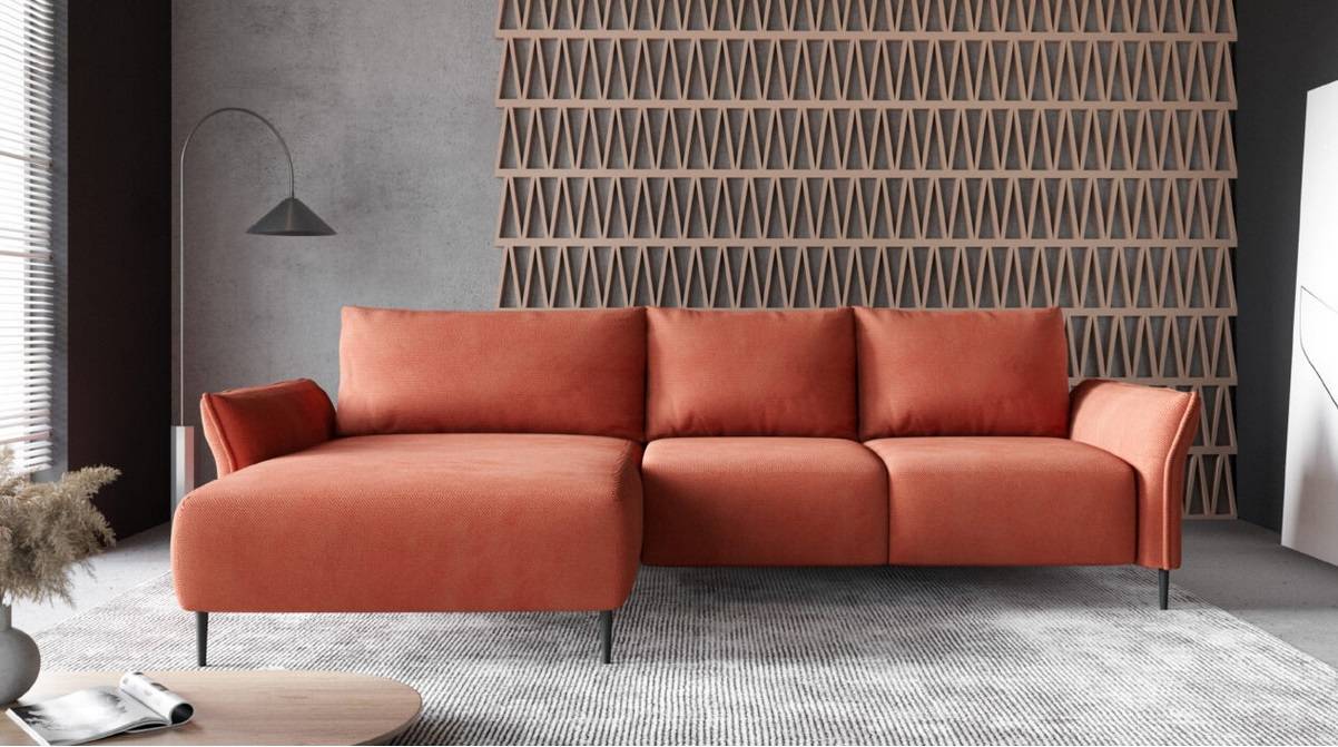 Funkčná sedacia súprava v modernom dizajne s vysokými čiernymi nohami Vás prekvapí svojimi vlastnosťami. Rozkladanie typu automat Vám umožní premeniť sedaciu súpravu na príležitostné lôžko v priebehu niekoľkých sekúnd. Úložný priestor sa nachádza pod sedacou časťou a je prístupný sklopením sedacej časti. Voľne položené vankúše viete kedykoľvek odobrať a vytvoriť tak dokonalé miesto na odpočinok a to aj bez rozkladu sedacej súpravy.