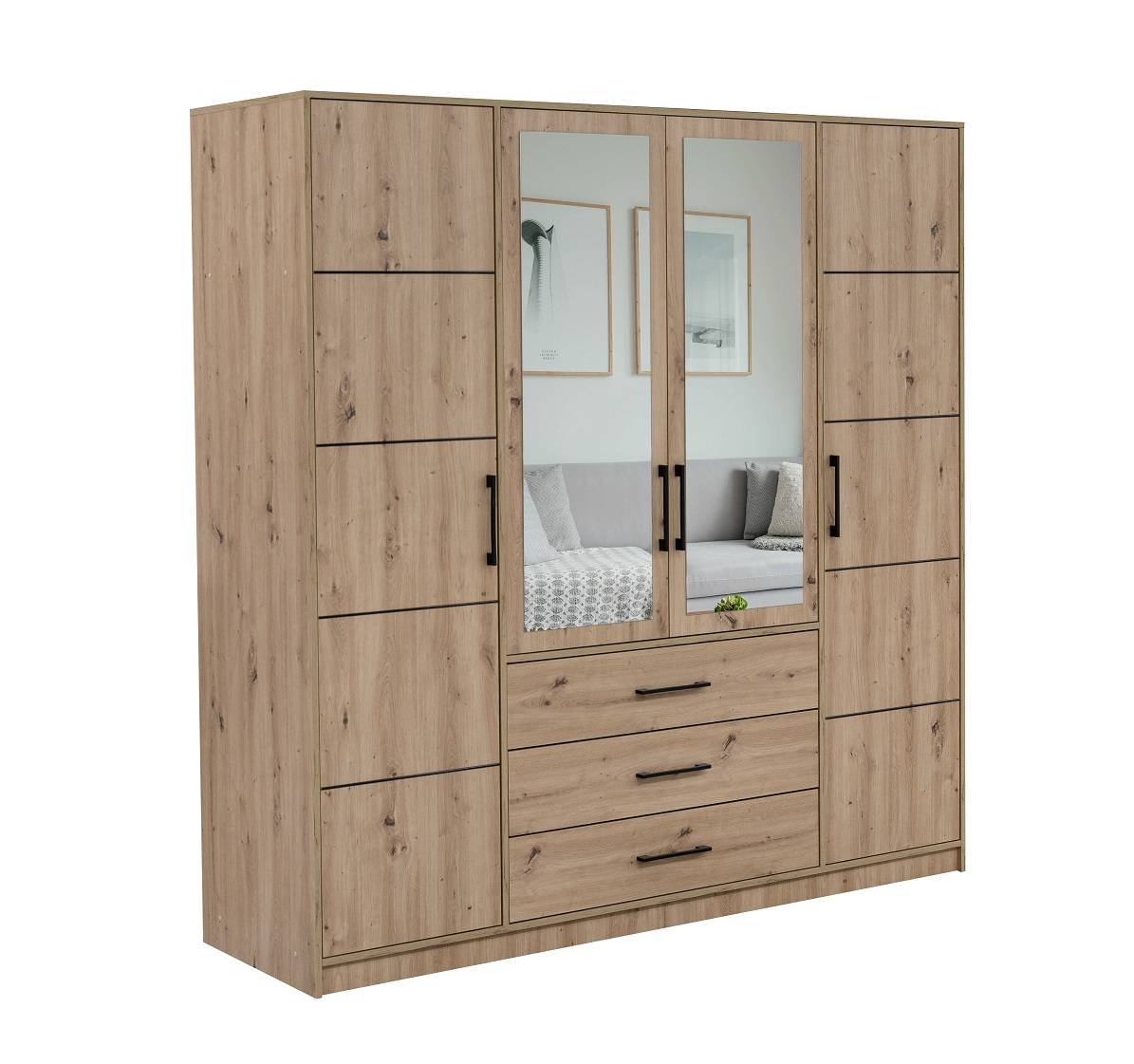 Šatníková skriňa KOS D4 vyniká jednoduchými čiernymi úchytkami a štýlovými čiernymi pruhmi na dvierkach, ktoré jej dodávajú jedinečný vzhľad. Vyrobená je z kvalitných a odolných materiálov, čo zabezpečuje jej dlhú životnosť a spokojnosť používateľov. Skriňa ponúka praktické a premyslené riešenie úložného priestoru, zároveň sa môže pochváliť moderným farebným prevedením a elegantnými líniami. Doprajte svojej spálni štýlový a funkčný doplnok v podobe skrine KOS D4. Pre ešte väčší úložný priestor je k dispozícii aj voliteľný nadstavec, ktorý je možné doobjednať.
