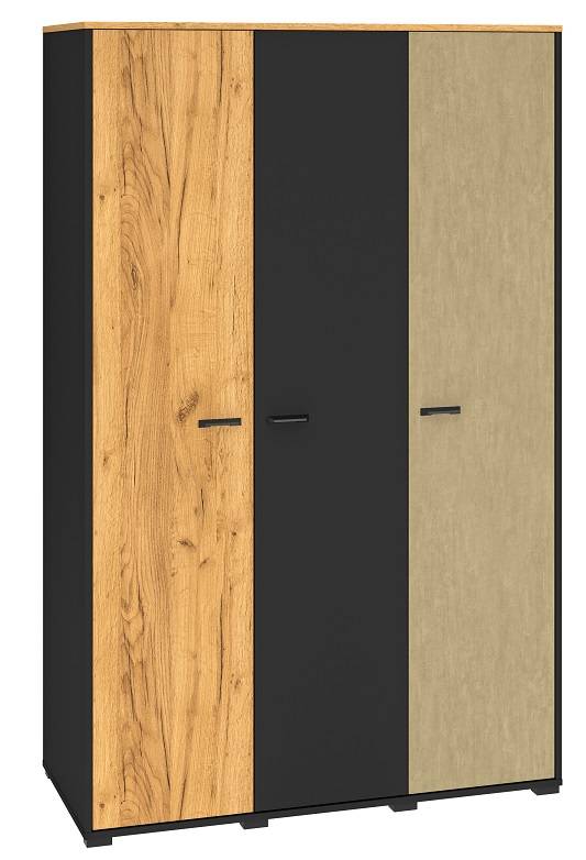 Trojdverová skriňa COLT 01 spája praktickosť, moderný dizajn a odolné spracovanie. Vďaka industriálnym prvkom pôsobí sviežo a originálne, čím dodáva interiéru výrazný, loftový charakter. Jej vnútorné usporiadanie je navrhnuté tak, aby vyhovovalo potrebám mladých ľudí – poskytuje dostatok priestoru na oblečenie, obuv aj osobné predmety. Model COLT 01 je nielen praktickým úložným riešením, ale aj štýlovým dekoratívnym prvkom, ktorý podčiarkne osobitosť priestoru. Predstavuje ideálnu voľbu pre tých, ktorí hľadajú kombináciu funkčnosti, moderného vzhľadu a individuality. Skriňa obsahuje štyri police a dve vešiakové tyče.