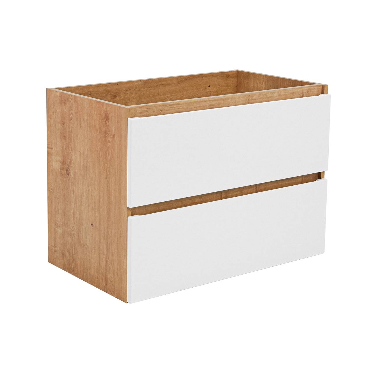 Umývadlová skrinka MONAKO OAK WHITE 821 kombinuje štýlový dizajn s praktickým využitím priestoru. Je vybavená dvoma hlbokými zásuvkami, ktoré poskytujú ideálne riešenie pre uskladnenie kozmetiky či hygienických potrieb. Biely povrch zásuviek vnáša do kúpeľne čistotu a eleganciu, zatiaľ čo dekor v odtieni dub hamilton prináša príjemný, prírodný dojem. Vďaka kvalitným materiálom – laminovanej doske – je skrinka odolná voči vlhkosti a každodennému opotrebeniu. Systém tichého dovierania zabezpečuje pohodlné a tiché používanie, čo oceníte každý deň. Skrinka je súčasťou kolekcie MONAKO, ktorá umožňuje vytvoriť zladený kúpeľňový interiér.