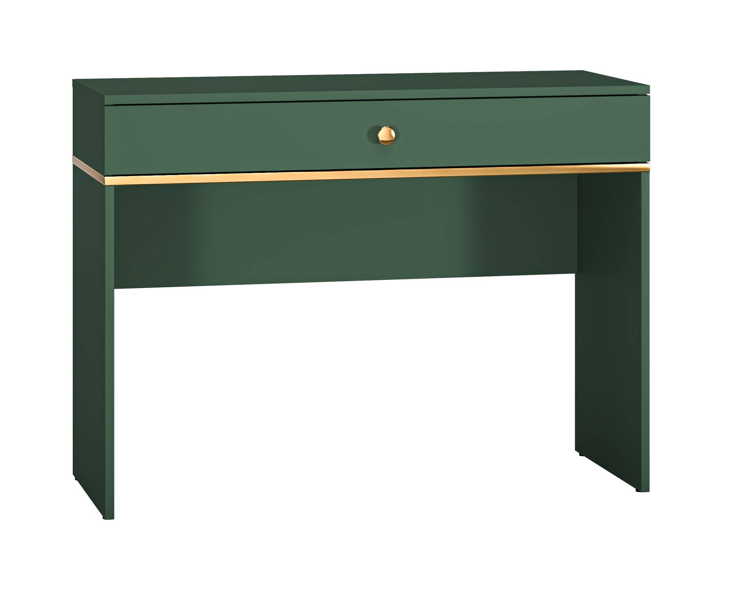 Toaletný stolík FOREST 09 zaujme moderným dizajnom a praktickosťou, vďaka čomu sa skvele hodí do každej spálne a pridáva jej jedinečný charakter. Zlaté detaily podčiarkujú luxusný vzhľad a dávajú stolíku elegantný, prestížny nádych. Veľkou prednosťou toaletky je priestranná zásuvka, ktorá poskytuje miesto na kozmetiku, šperky alebo drobné doplnky, takže všetko potrebné budete mať vždy poruke a priestor okolo zostane uprataný. Toaletka FOREST 09 je nielen funkčné centrum krásy, ale aj štýlový dekoratívny prvok spálne. Vysoká kvalita spracovania a moderný vzhľad robia z tohto stolíka ideálnu voľbu pre tých, ktorí oceňujú štýl, funkčnosť a dôraz na detaily.