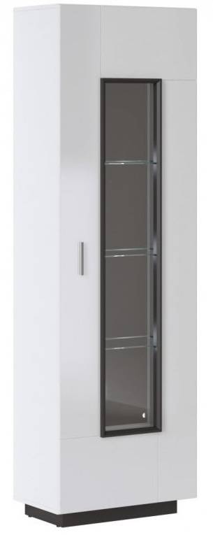 Vitrína ponúka nádherné dvierka so sklom a tri sklenené a dve pevné police.