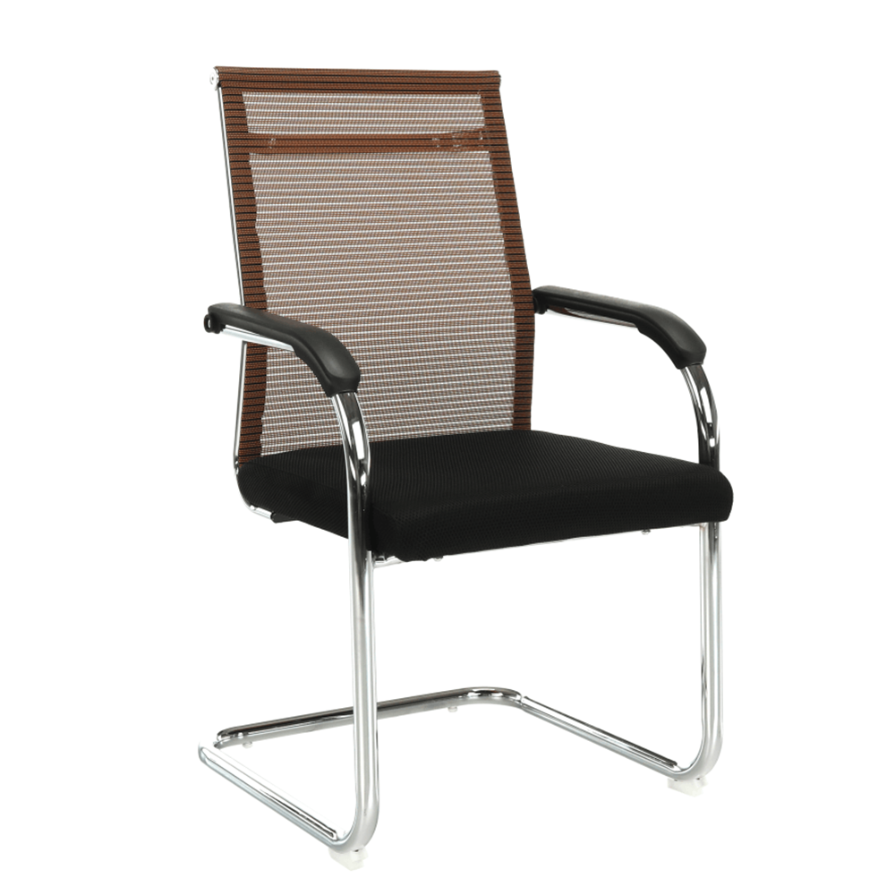 Stolička ESIN je ideálnym riešením pre zasadačky, rokovacie miestnosti alebo kancelárie. Kombinuje moderný dizajn s pevnou konštrukciou z kovu v striebornej farbe a pohodlné sedadlo z čiernej sieťoviny, operadlo je hnedé. Plastové opierky na ruky zaisťujú komfort aj pri dlhšom sedení. Stolička je stabilná, ergonomicky tvarovaná a vhodná pre profesionálne prostredie.